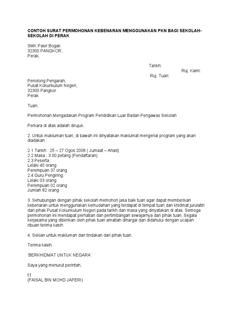 Surat permohonan kebenaran menjalankan kajian di sekolah. Contoh surat rasmi keluar asrama rasmi suf . Contoh surat rasmi dan format terkini yang betul percuma . Surat memohon kebenaran menggunakan dewan.